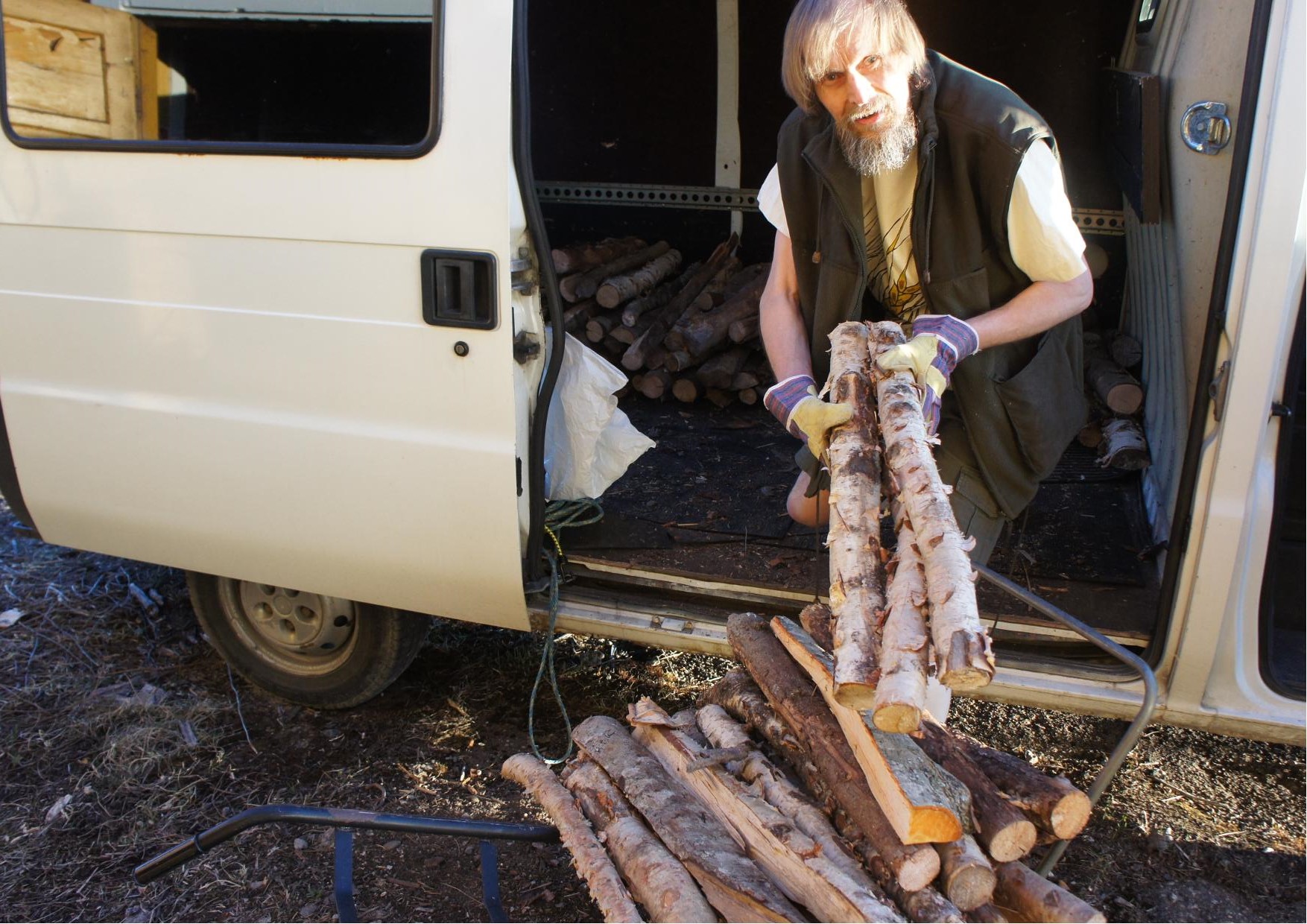Antero Huttunen purkamassa kuormaa Kiuruveden asemamakasiiniin.