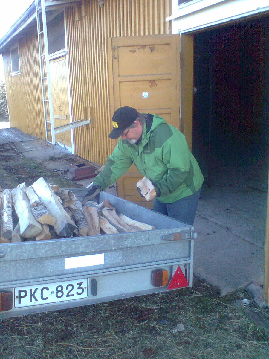 Kuva0495 Published 12.5.2014 at 900 × 1200 in Kuva0495 Matti Eskelinen purkamassa puukuormaa Kiuruveden asemamakasiiniin.