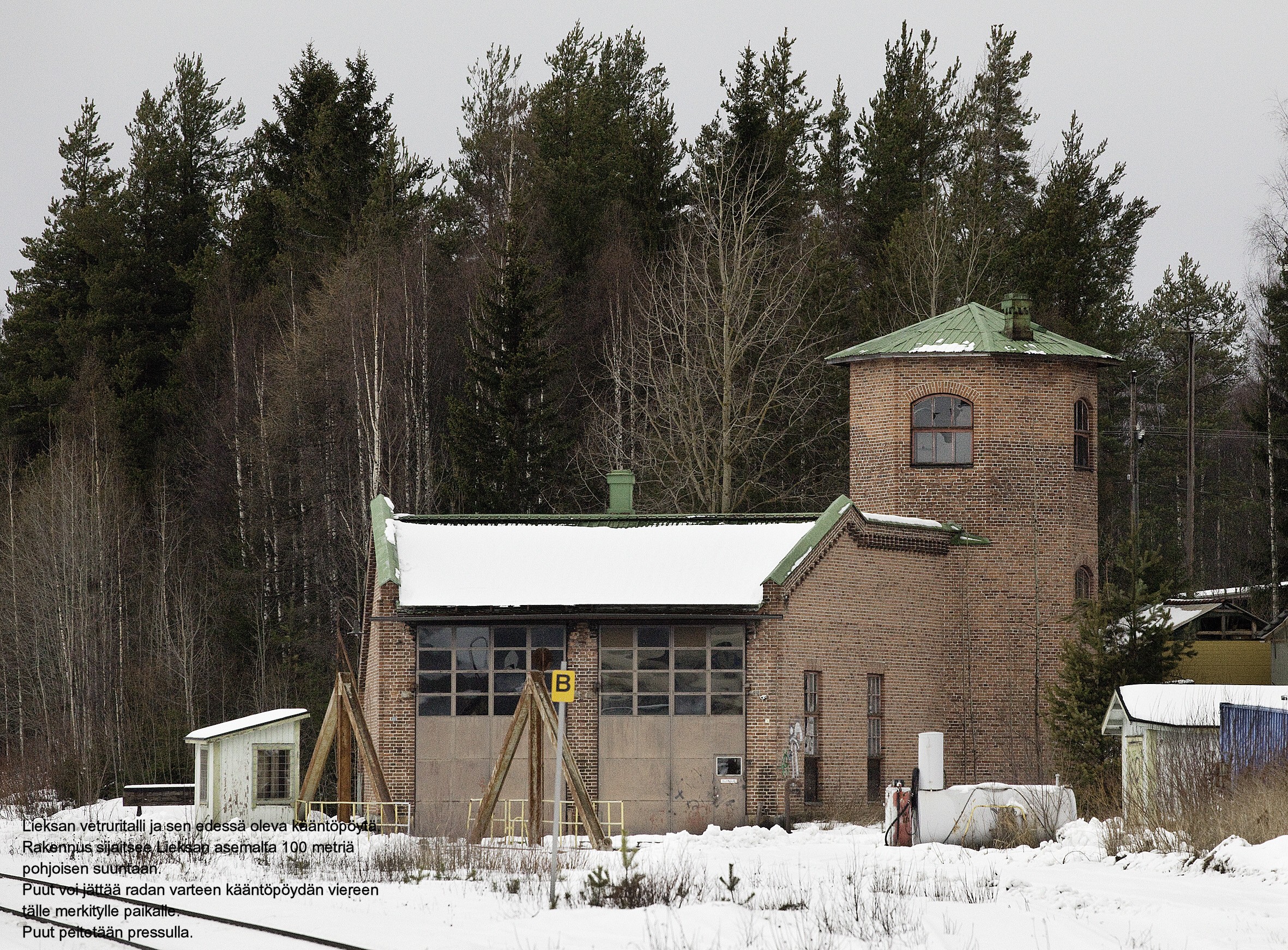 Lieksan rautatieaseman veturitalli-teksti