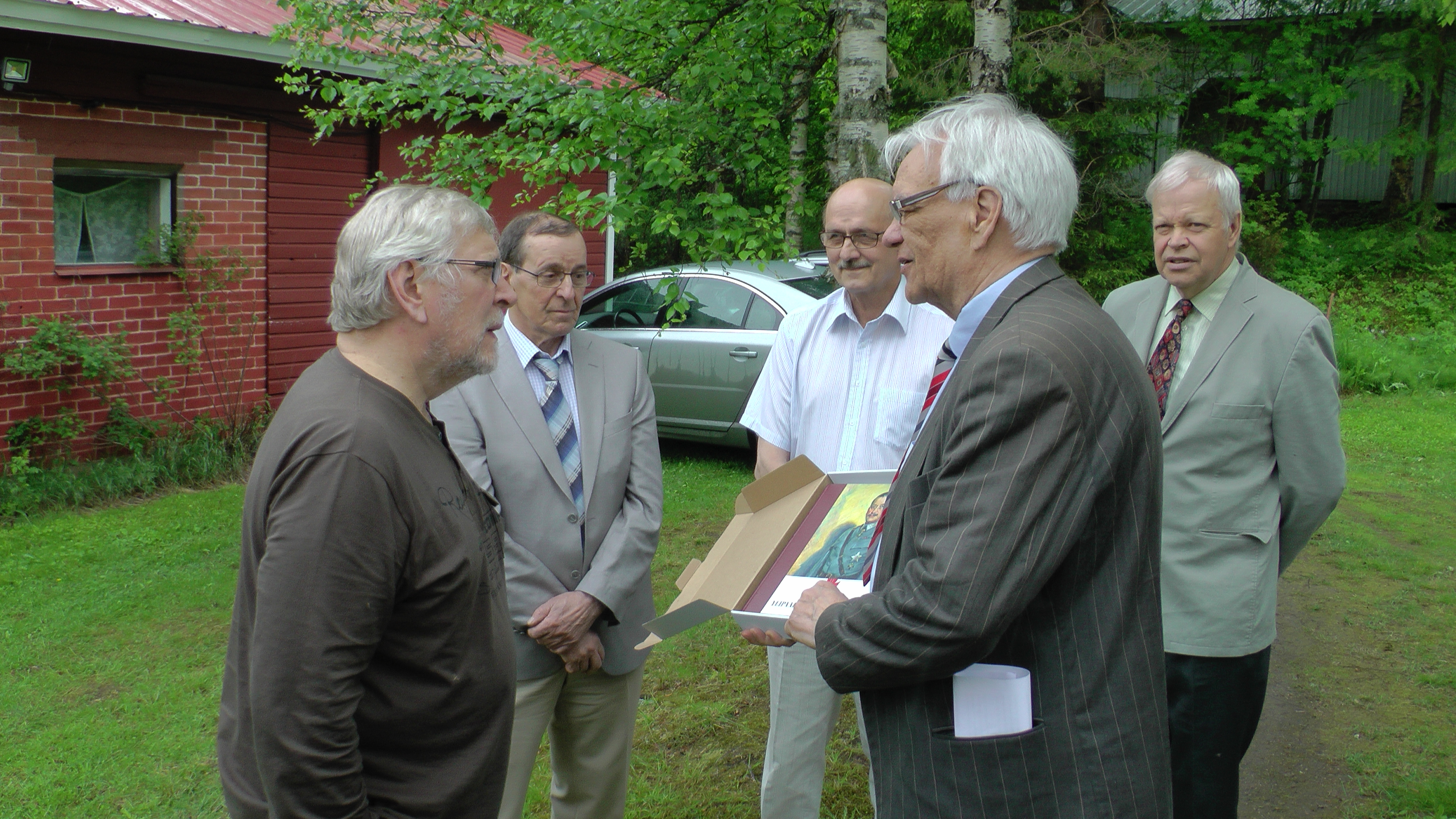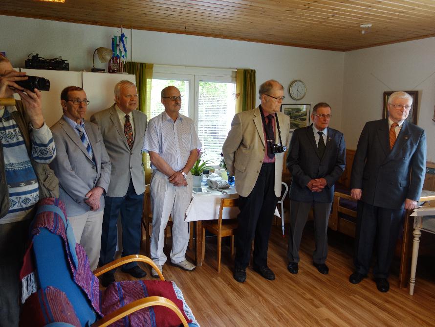 Yhdentoista onnittelijan joukko edusti laajalti Pohjois-Savon ja Pielisen Karjalan sotaveteraanityön aktiiveja ja sotahistorian harrastajia. Mukana oli onnittelijoita Pielavedeltä, Kiuruvedeltä, Nurmeksesta, Lieksasta, Kuopiosta ja Keravalta saakka. Vaikka juhannusaaton sää ei suosinutkaan, oli tunnelma sitäkin lämpimämpi.