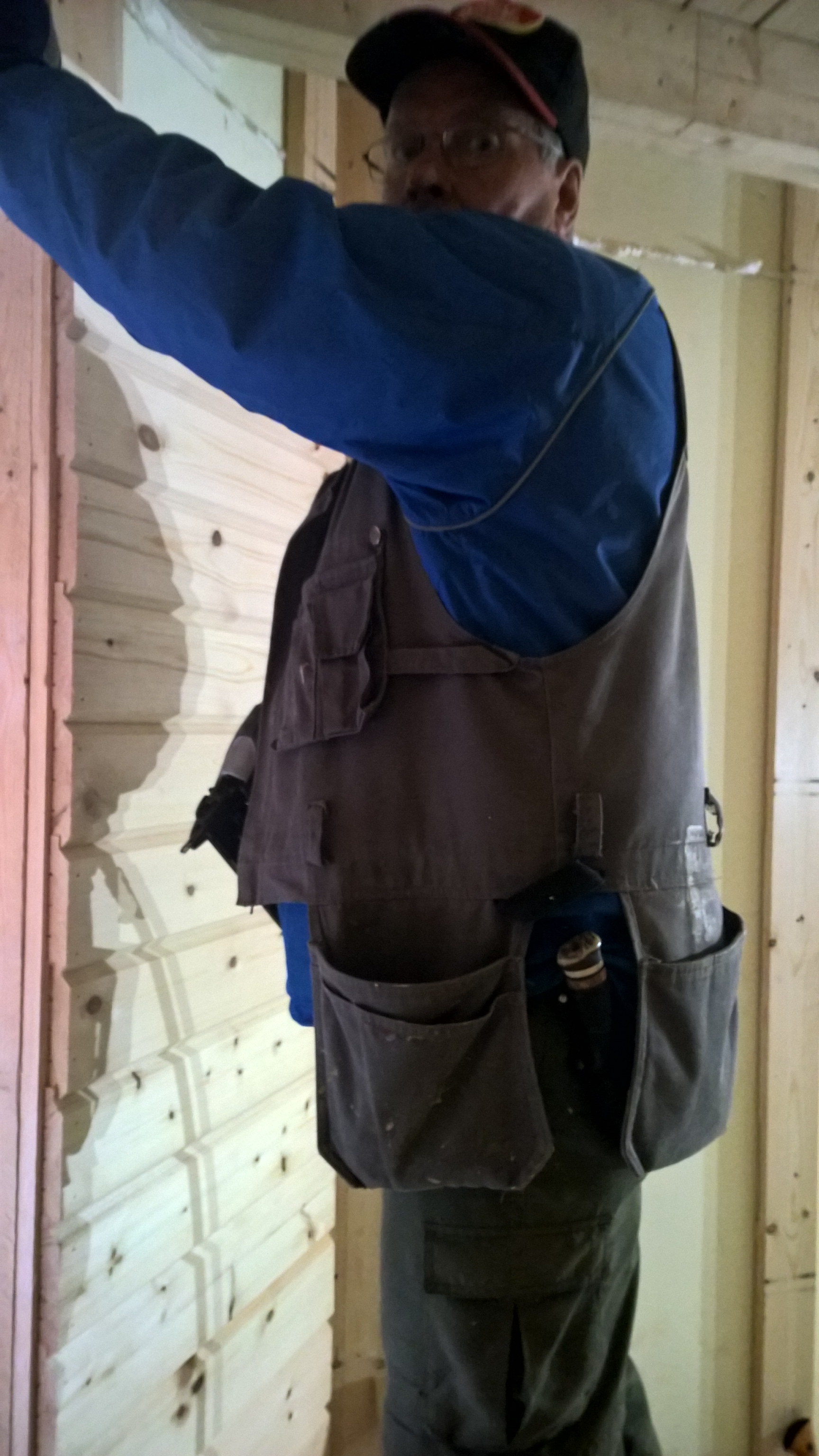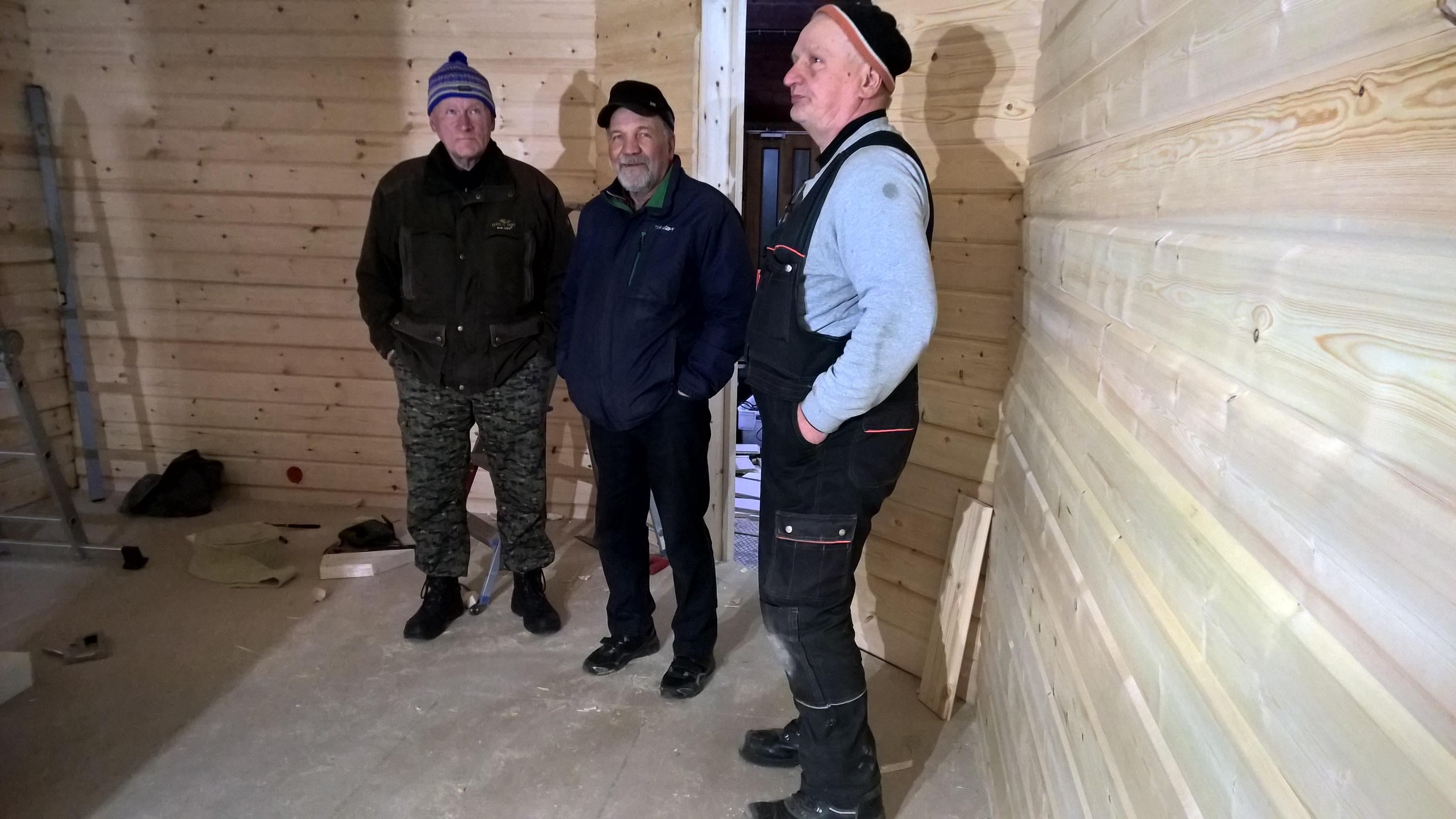 Nurmijärven kyläyhdistyksen jäsenet ovat osallistuneet jokaisena päivänä Rukajärvi-keskuksen talkootyöhön. Niinpä työ on edistynyt siten, että lämpimän tilan sisäseinistä kolmeneljäsosaa on saatu paneloitua.