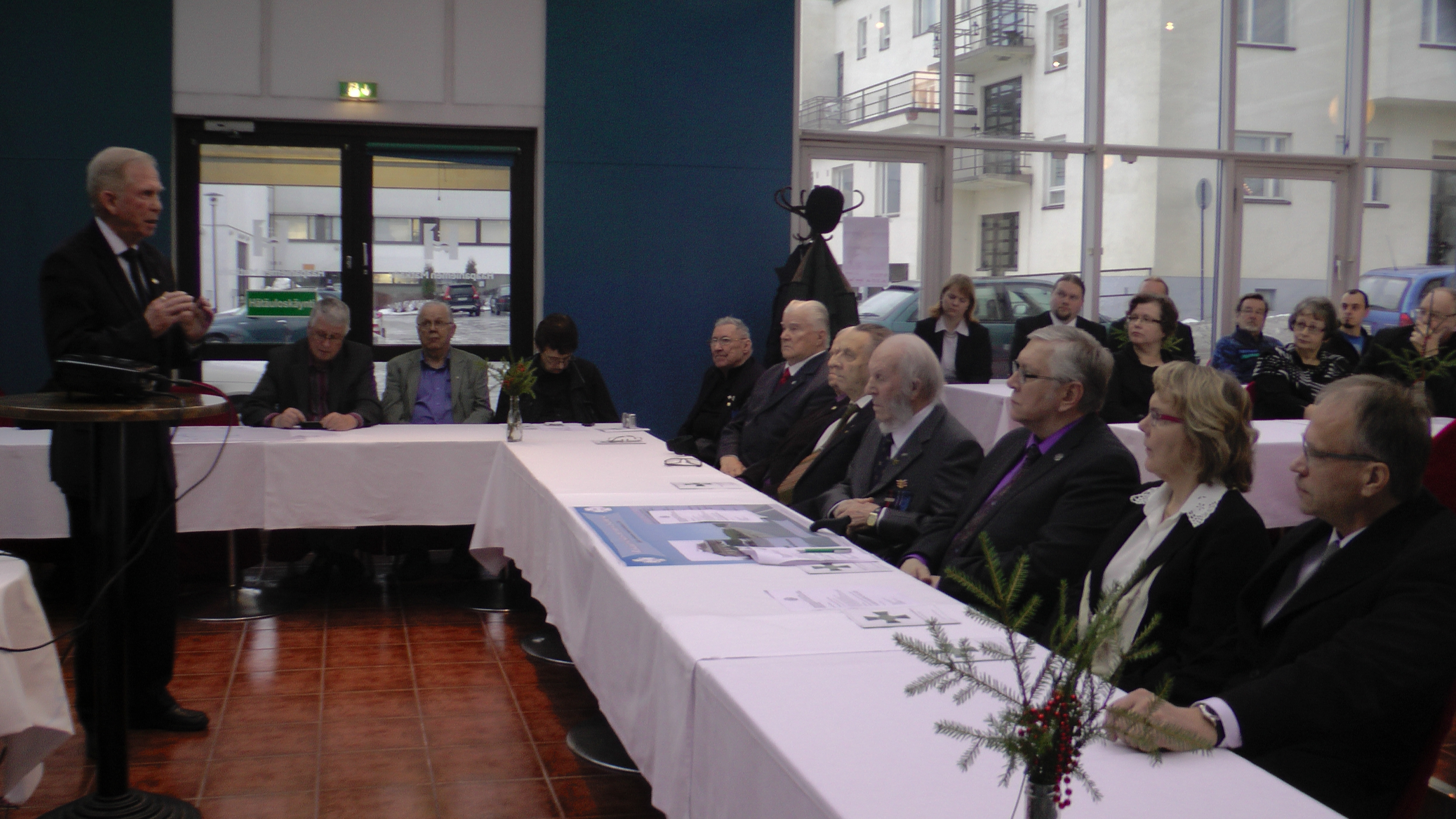 Rukajärven suunnan historiayhdistys ry., puheenjohtaja Tenho Tikkanen Iisalmessa 12.12.2013 Rukajärvi-keskuksen toiminnan aloittamista koskevassa tiedotustilaisuudessa.