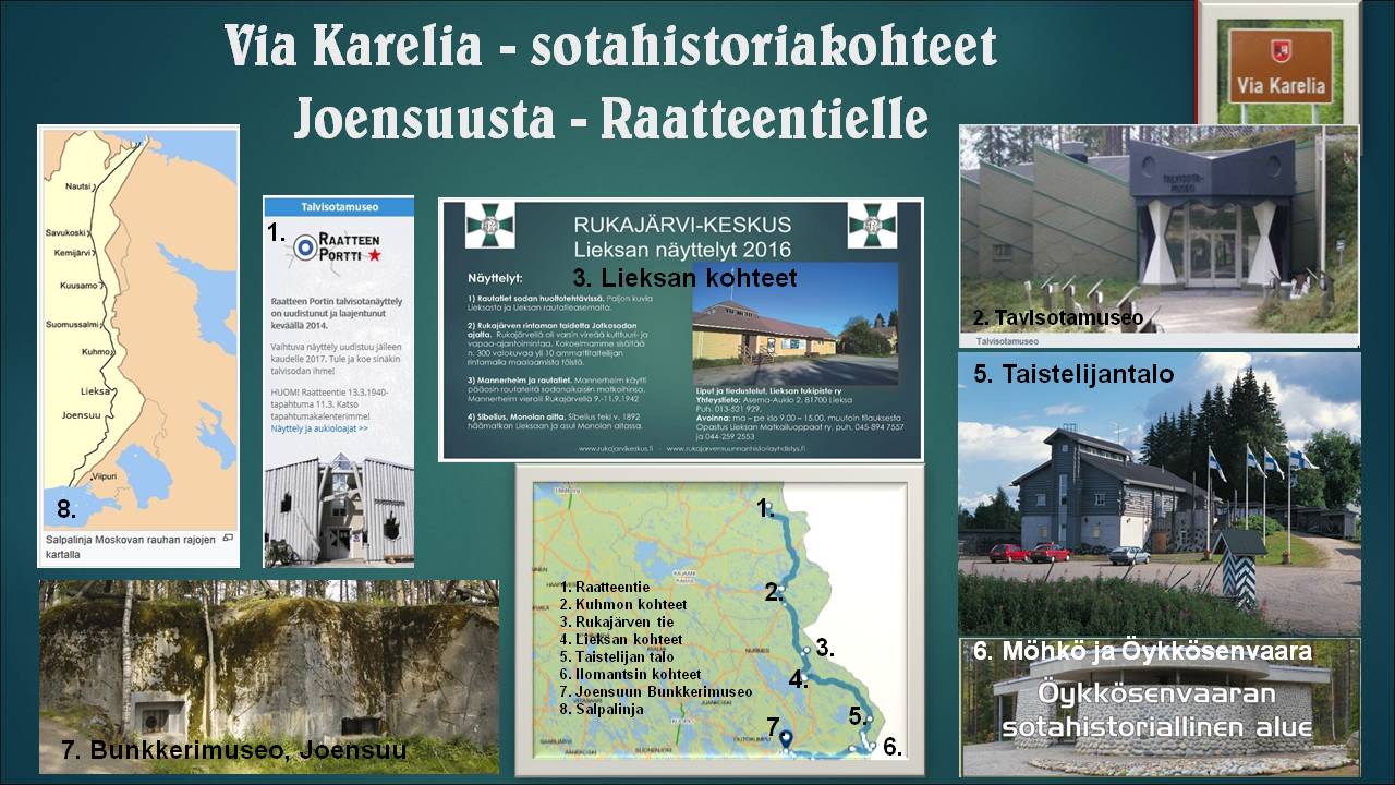 Lieksan ja Ilomantsin tekemän sopimuksen piiriin pyritään saamaan myös Kuhmon, Suomusalmen ja Raatteentien kohteet. Jokaisessa paikassa matkailijalla olisi mahdollista saada keskitetysti tietoa Joensuun, Ilomantsin, Lieksan, Kuhmon ja Suomussalmen vastaavista sotahistoriakohteista.