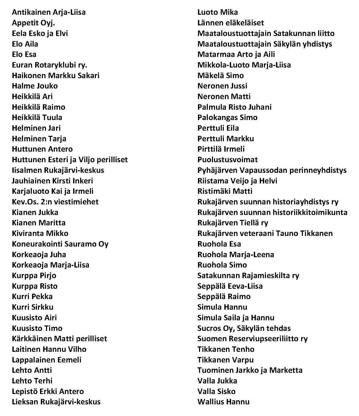 Pentti Perttulin muistorahastoa kartuttivat omaisten toivomuksen mukaisesti seuraavat yksityiset henkilöt ja yhteisöt: