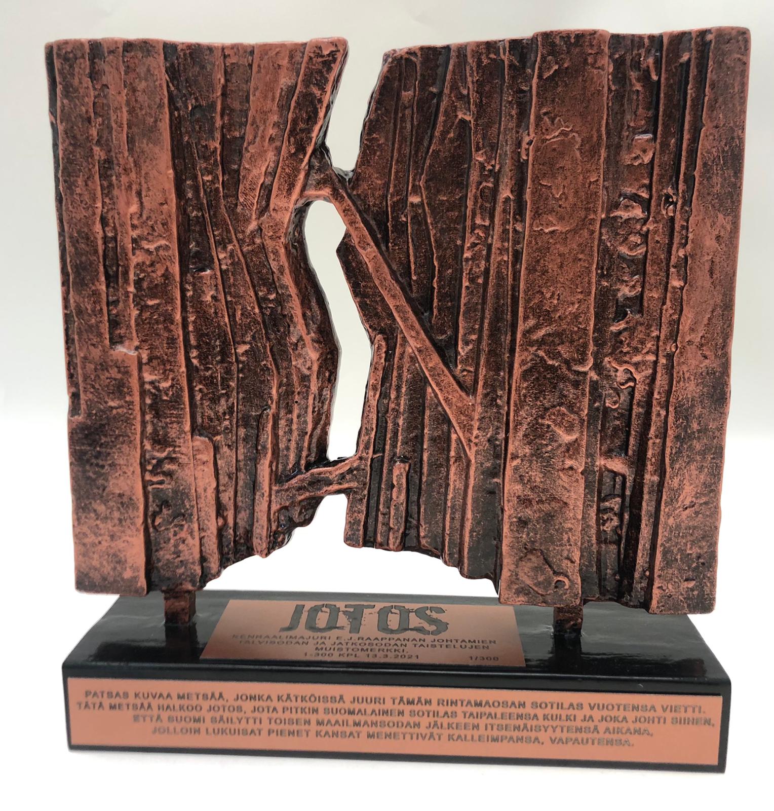 3D -tulostettu 1,344 kg painava patsas, joka on jäljennös Lieksassa sijaitsevasta Rukajärven suunnan Jotos -muistomerkistä.