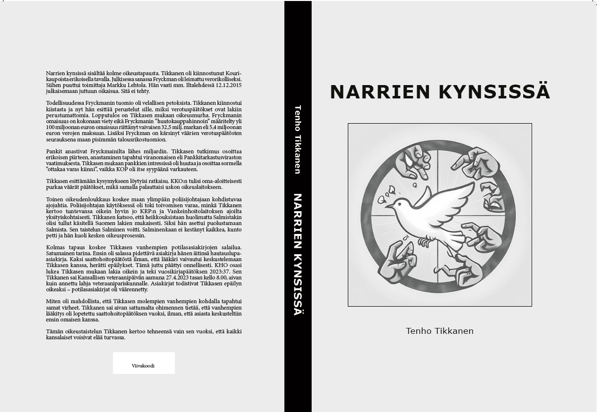 Tikkanen on yhdistyksemme pitkäaikainen puheenjohtaja ja hän haluaa tukea yhdistyksen Lieksan Rukajärvi-keskuksen hanketta tämän kirjan tuotolla. ”Narrien” kynsissä on ensimmäinen osa hänen muistelmateoksistaan. Tämä käsittelee kolmea oikeustapausta. Tikkanen oli kiinnostunut Kouri-kaupoista erikoisella tavalla. Julkisessa sanassa Fryckman oli leimattu verorikolliseksi. Siihen puuttui toimittaja Markku Lehtola. Hän vaati mm. Iltalehdessä 12.12.2015 julkaisemaan juttuun oikaisua. Sitä ei tehty.