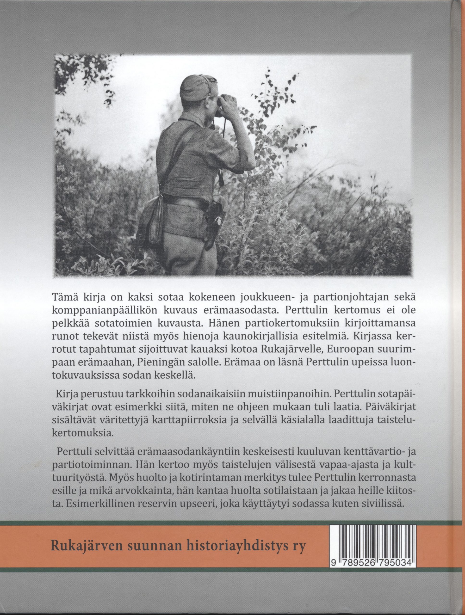 Tämä kirja on kaksi sotaa kokeneen joukkueen- ja partionjohtajan sekä komppaniannpäällikön Pentti Perttulin kuvaus erämaasodasta.