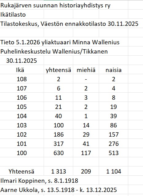 Tätä artikkelia kirjoittaessamme meille paljastui, että Ilmari Koppinen on maamme vanhin miespuolinen kansalainen. Ilmari Koppinen ja Aarne Ukkola olivat samana vuonna syntyneet. Aarne Ukkola menehtyi 13.12.2025.
