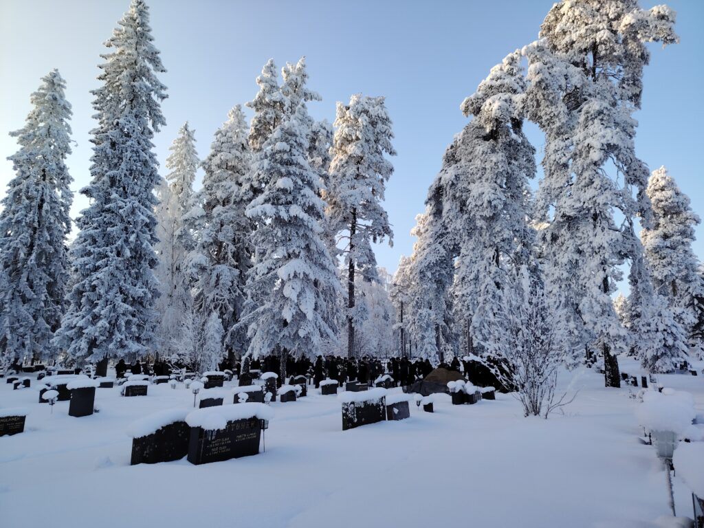 Jussi Sirviö haudattiin Sonkajärven hautausmaalle kauniissa pakkassäässä.