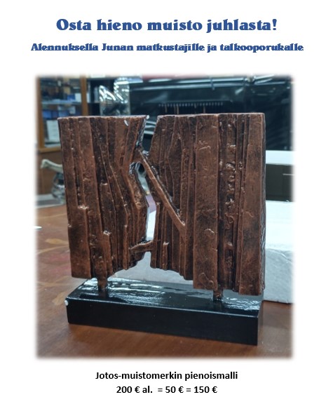 Jots-muistomerkki pystytettiin Lieksan Vapaudenpuistoon, muistomerkin historiikki tulee pienoismallin pakkauksen mukana.