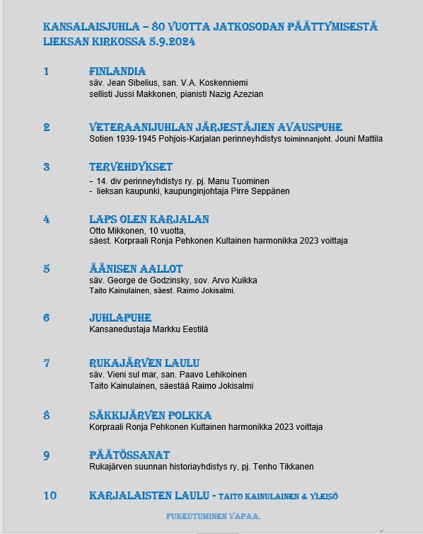 Juhlan aikataulut ja ohjelmat koottuna PDF-tiedostona, jonka voit tulostaa TÄÄLTÄ: