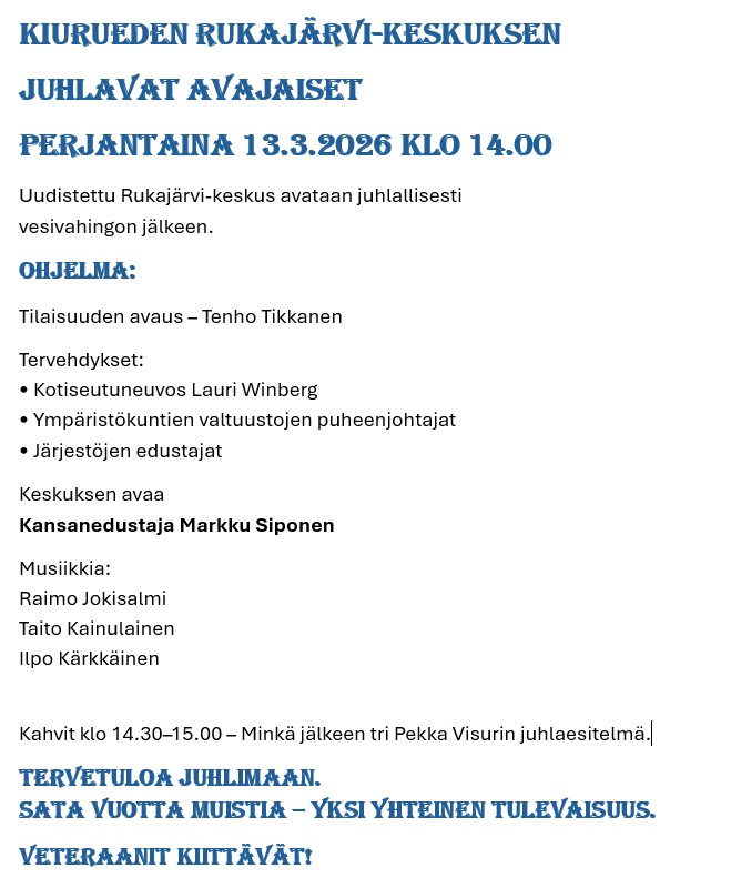 Tervetuloa kokemaan historiallinen hetki Kiuruvedelle.