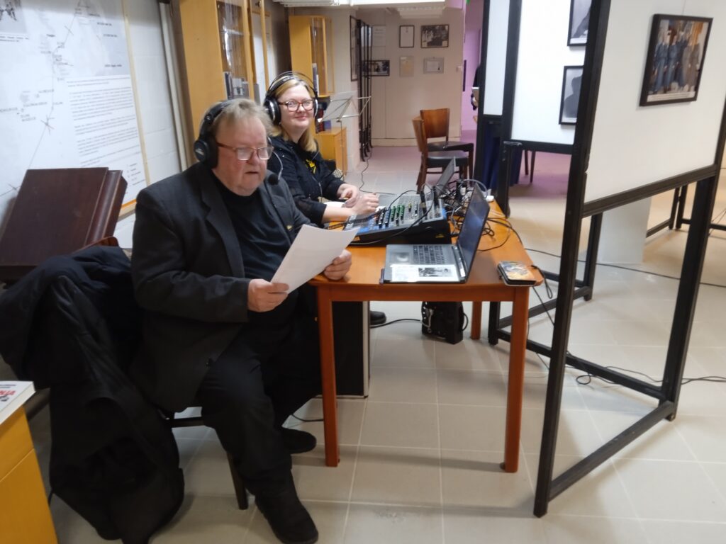 Radio Sandelsin toimittajat Reijo Glad ja Susanna Kvick työssään. Kuva Maarit Äyhynmäki.