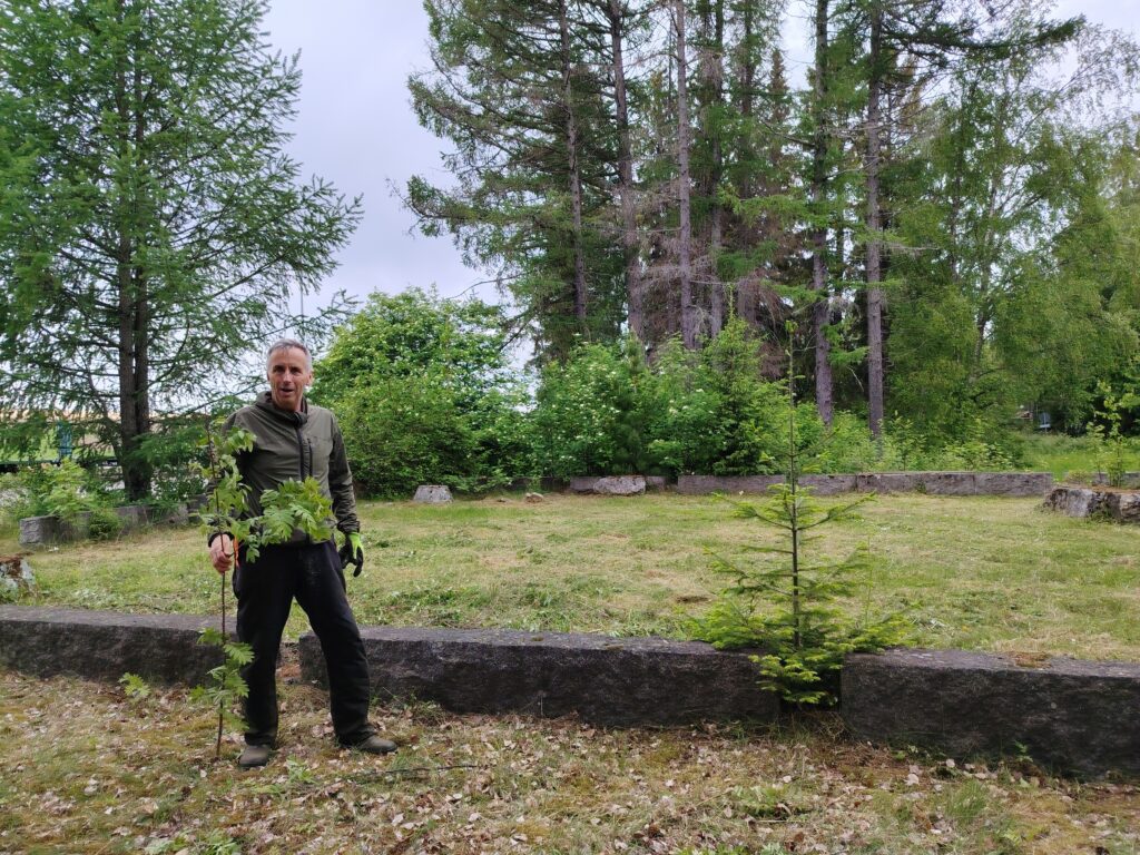 Jouni Könttä jaksaa puurtaa – piha on siivottu ja vesakot ja nurmi leikattu.