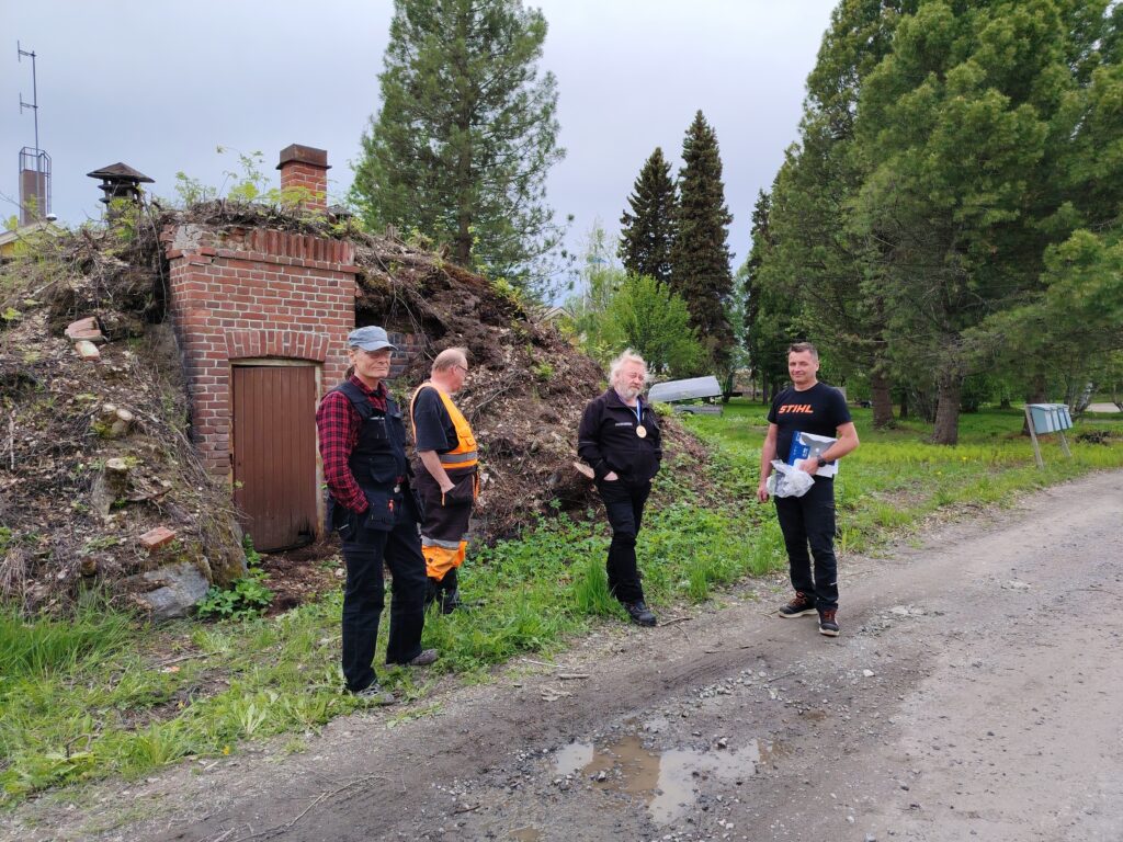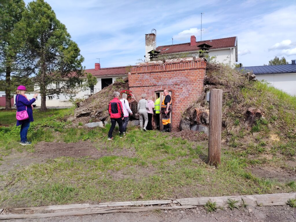 Yhdistys hankki asemakiinteistön tarkalleen vuosi sitten 2.6.2024, aseman kellarin avain oli hukkunut ja nyt ovi jouduttiin murtamaan. Se työ ei ollut Tatu Poimalalle kovinkaan vaikea tehtävä. Ensikertaa päästiin tarkastamaan missä kunnossa kellari on sisältä. Täysin kuivat seinät. Rakennustarkastajakin saattoi ihmetellä, että kylläpä on osattu vuonna 1909 rakentaa kunnon ilmanvaihto. Kuva Pekka Piironen.