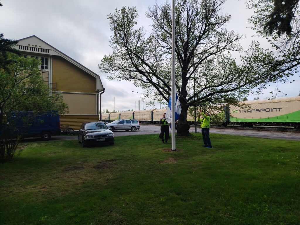Aseman lipputankoon vedettiin Suomen lippu heti aamusta, Risto Vänskä,, Asko Hiljanen, Teuvo Savolainen, Jouko Pietikäinen, Hannu Nevalainen ja Pirkko Rutasen toimesta.