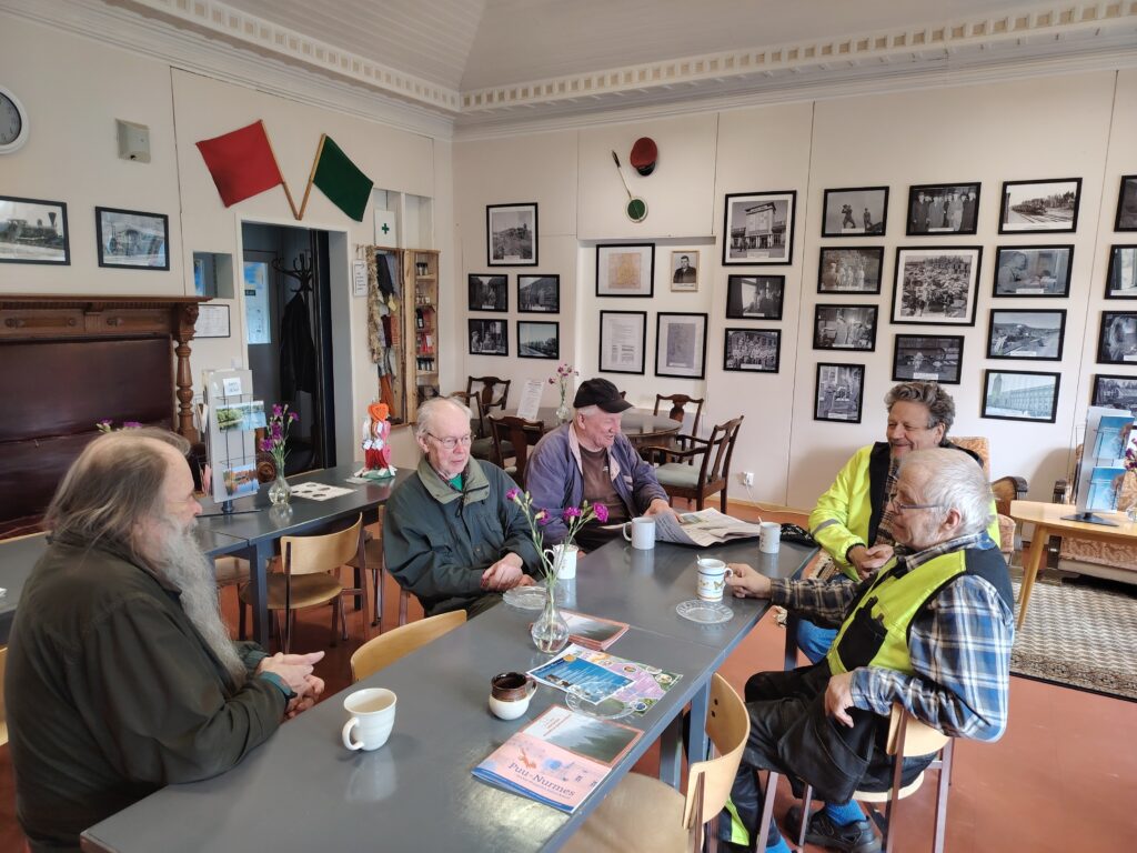 Aamukahvinjuonti jäi kesken kun porukalla haluttiin kunnioittaa E.J. Raaappanan syntymäpäivää ja aseman emäntää Irma Nykäsen syttäreitä.