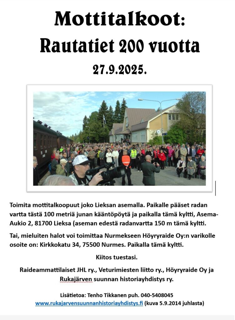 Rautateiden 200-vuotisjuhla – Lähde mukaan höyryjunamatkalle – Nurmeksesta Lieksaan 27.9.2025