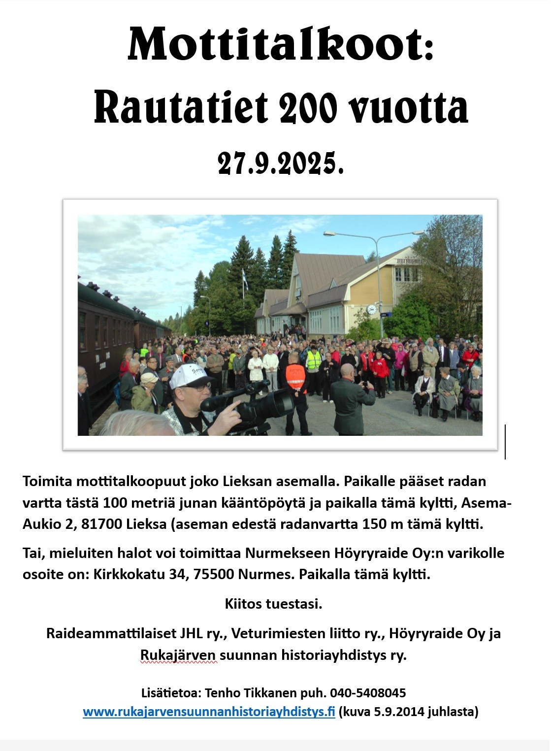 Tule mukaan kokemaan ainutlaatuinen juhlapäivä, jossa mennyt ja nykyhetki kohtaavat – höyryjunan savun tuoksussa, musiikin säestyksellä ja veteraanien tarinoiden äärellä.