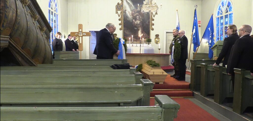 Aarne Ukkolan (13.5.1918 – 13.12.2025) siunauksen toimitti Sonkajärven kirkkoherra Riitta Valtokari.