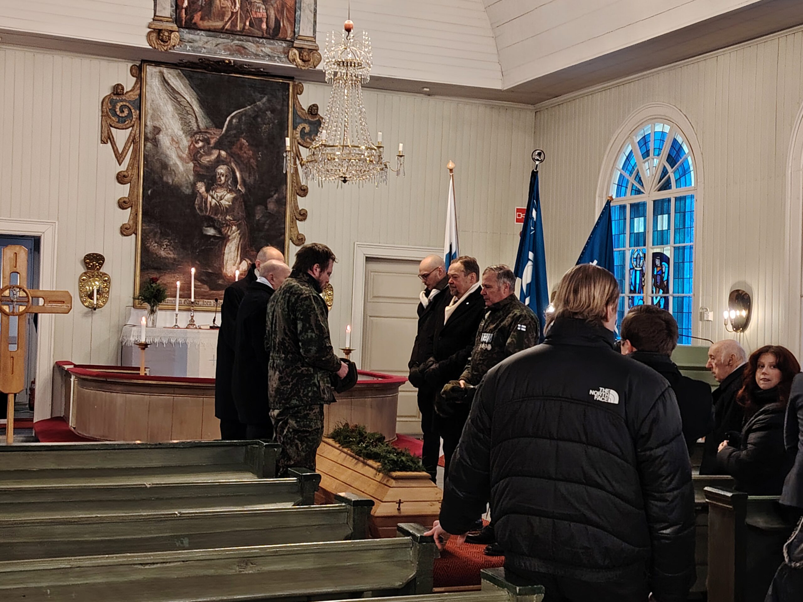 Arkkua kantoivat omaisten lisäksi veteraanijärjestöjen edustajina Aarno Kellin, Kari Järvinen, Simo Pietilä, Aaro Kiviniitty ja Miika Vanhatalo.