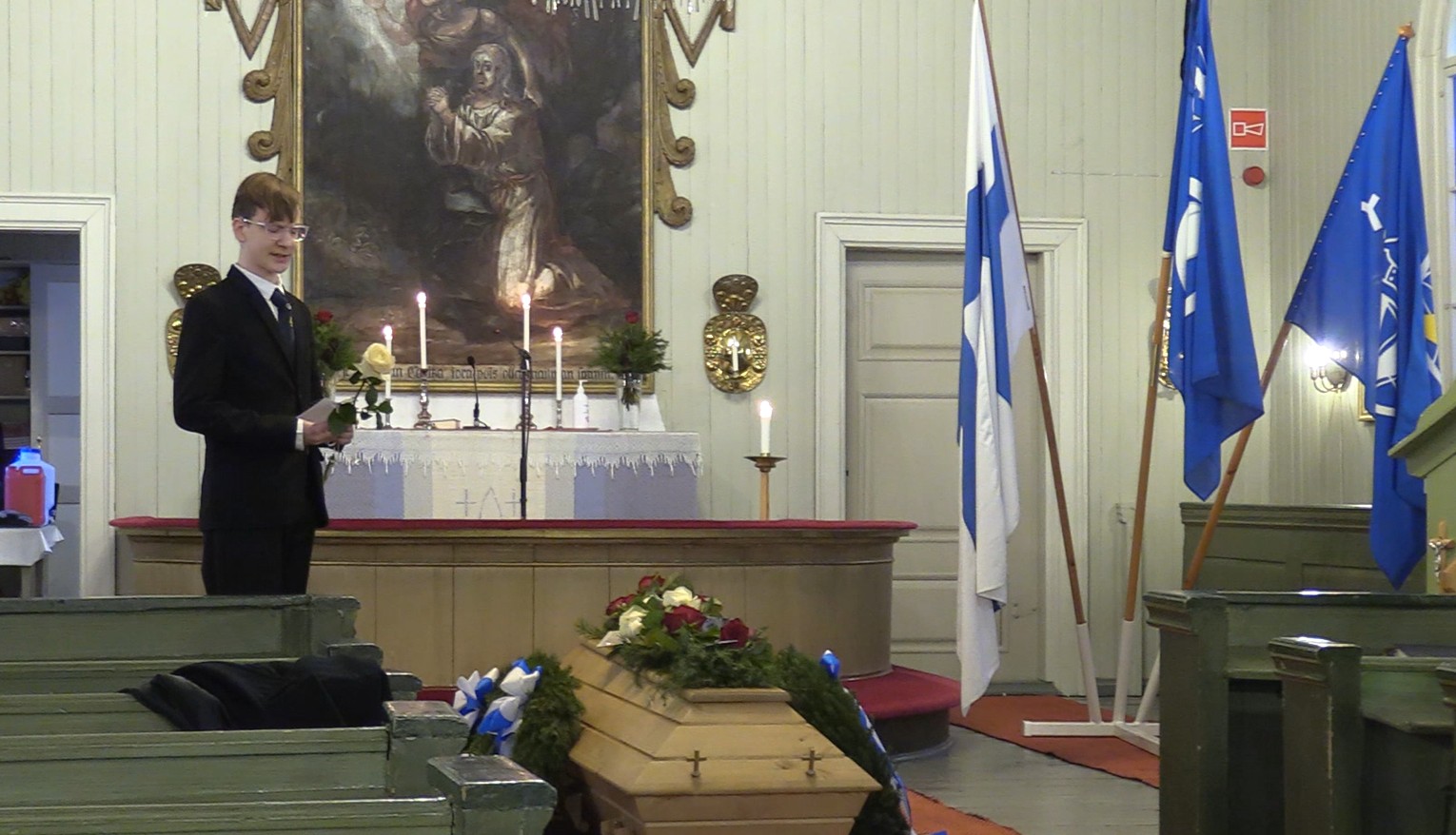 Nuori Antton Häkkinen osallistui myös Aarne Ukkolan siunaustilaisuuteen.