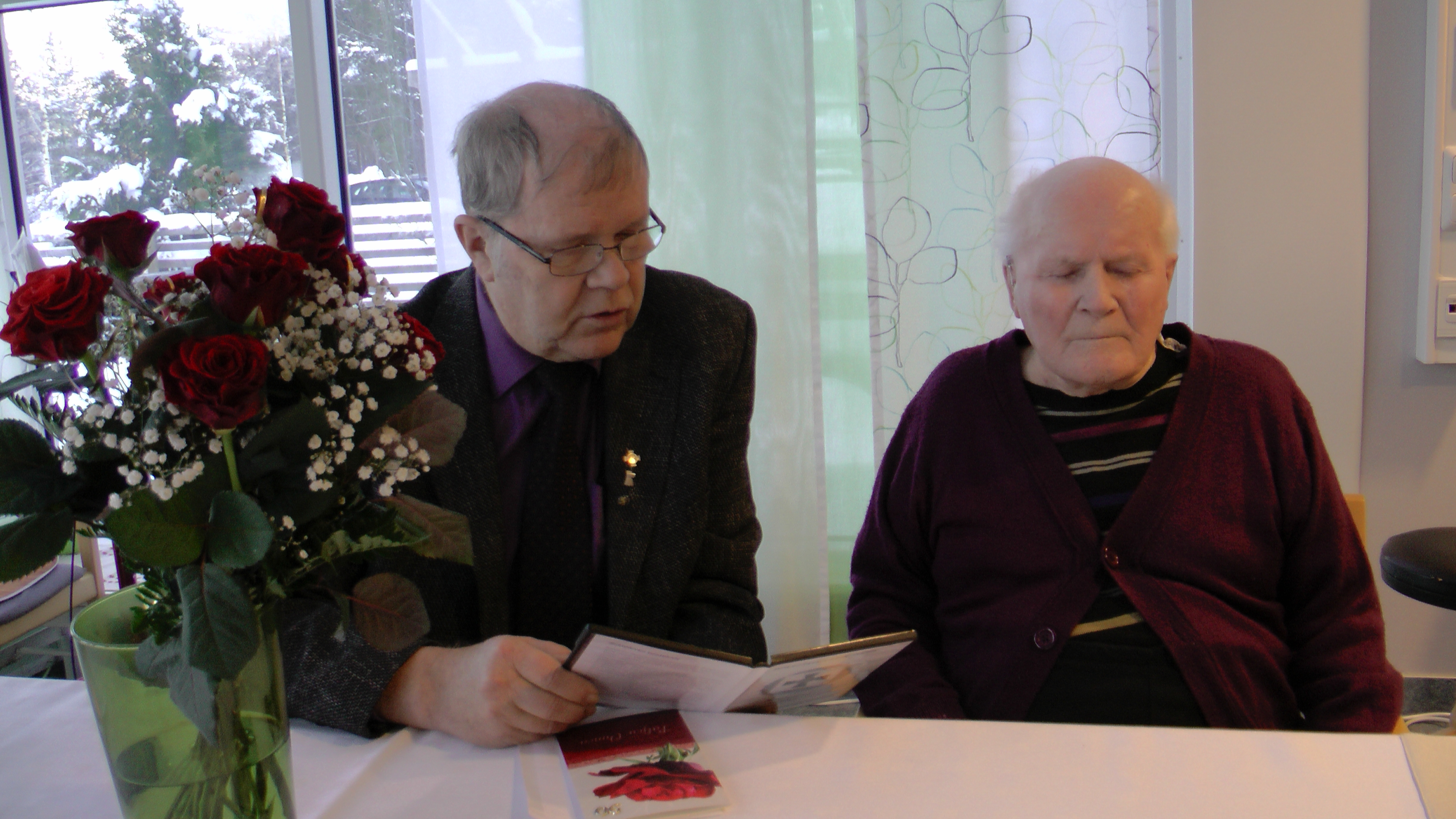 Samalla yhdistyksen edustajat tervehtivät paikalle saapuneita veteraaneja 4.8.1921 syntynyttä Rukajärven veteraani Viljo Meriläistä ja 15.11.1916 syntynyttä veteraani Matti Kärkkäistä. Perhonkankaan Matti on Rukajärven elokuvasta tutun Jussi Kärkkäisen veli. Jussi haavoittui vaikeasti Repolan Lieksajärven kierroksella 10.7.1941. Matin värikkäät haastattelu ovat tallennettu yhdistyksemme digiarkistoon ja nähtävissä Rukajärvi-keskuksissa. Mieleenpainuvin haastatteluista on ”Kajaanin viinakaupan ryöstö.”