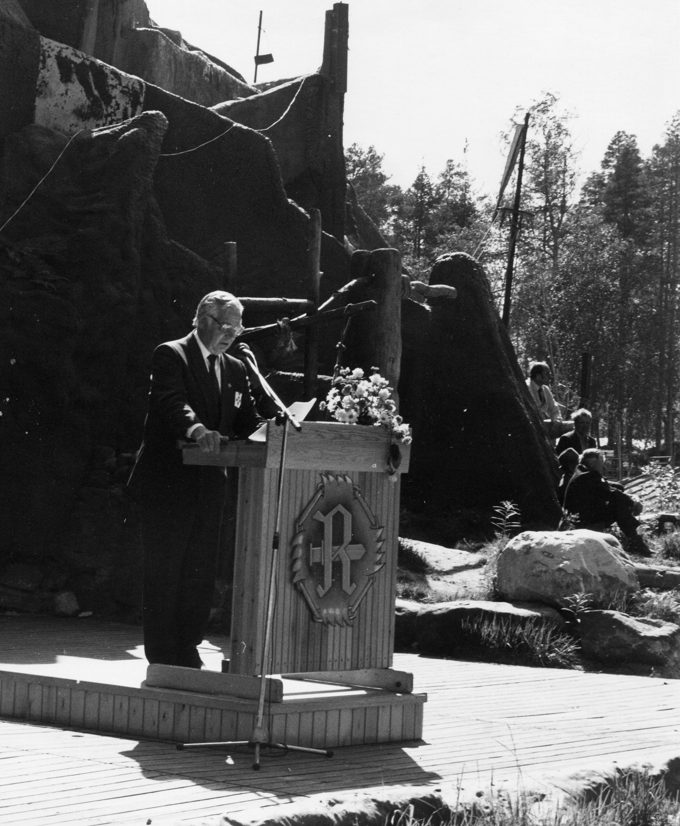 Suururakka on valmistumassa, aloitteen Rukajärven tien rakentamisesta olemme saaneet Teiltä arvoisat Rukajärven veteraanit. Osoittamanne esimerkin voimin, Rukajärvikeskus on syntynyt yhteisen yhdistyksemme piirissä. Se on laajan yhteistyön tulos, jonka käytännön työn ovat suorittaneet Rukajärven suunnan historiayhdistyksen ja Lieksan Rajakillan jäsenet. Tämä on ollut meille mielenkiintoinen ja mieluisa historiallinen ja opettavainen tehtävä. Sitä toteuttaessamme olemme joutuneet vaivaamaan suurta määrää ihmisiä. Kiitämme Paul ja Franz Betckeä, Lieksan kaupunkia, Kontiolahden kuntaa, Rajavartiolaitosta, Suomen kulttuurien museota sekä muita myötävaikuttaneita tahoja ja lahjoittajia, joiden nimet painetaan aikajärjestyksessä Rukajärvikeskuksen seinälle. Työ on suoritettu talkoovoimin, josta kiitos talkooväelle. Rukajärvikeskuksen talkootyöhön viimeisessä vaiheessa osallistui 50 henkilöä, mikä vastaa n. 150 henkilötyöpäivää.